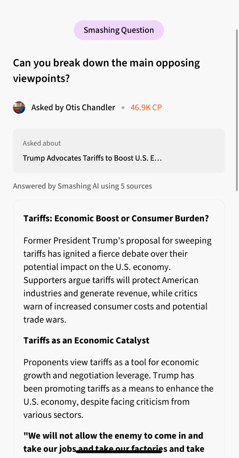 At Smashing, we’ve been grappling with this issue. Let’s look at the economy and tariffs as an example. Trump’s proposed tariffs could significantly impact the U.S. economy. However, people have vastly different views on this topic.